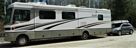 I have been keeping a detailed daily camping journal, including photos of every camp site since 1999. We enjoy going over it to remember the adventures we have had over the years, especially when it is snowing and blowing outside.We have been RVing for over 40 years and pictured above is our current and 7th RV named, logically, “Seven”. It replaced “Thirsty” which in turn replaced “Stinky”.